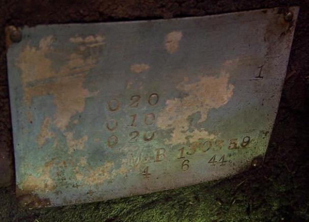 | The Engine in GPW 21987 is an early Willys MB Engine, above left photo. The serial number on the engine is MB-130359, which was produced roughly March 26th 1942. Close-up of the Ford Production Data Plate, right photo. From the start of production through the summer of 1942, the Ford GPW used this style of brass data plate. |