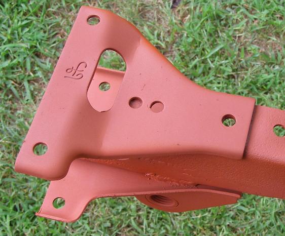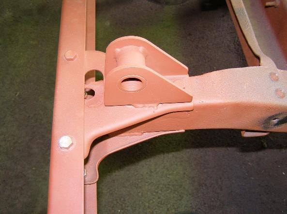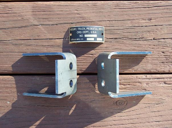 | GPW 69289 Rear Cross Member, above left photo. The reproduction GPW rear cross member and spring shackle after being correctly welded to the frame, above left photo. Machine-gun mounts, above right photo. The special mounts after being correctly welded to the frame, above right photo. This modification was not done at the factory but rather by ordnance units in field depots. |