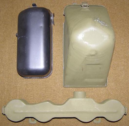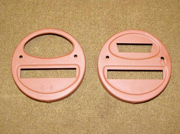 | Radio Filterette, above left photo. Driver and passenger side Tail Light covers, above right photo. The face of these covers are marked C-B for Corcoran Brown. |
