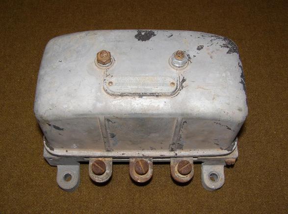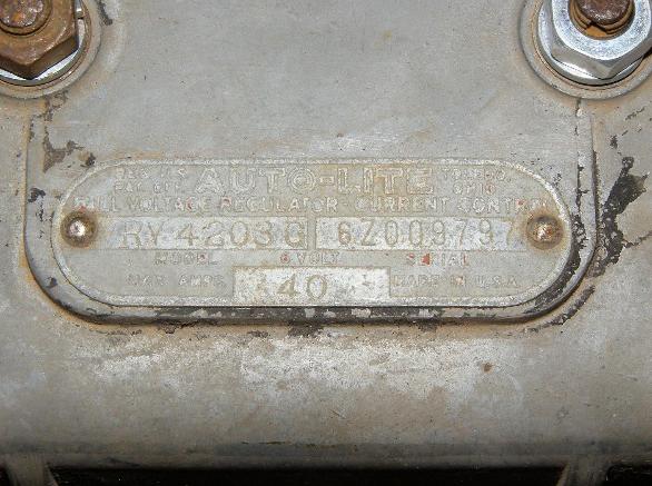| Autolite VRY4203G Voltage Regulator, above left and right photo. This voltage style of regulator was introduced in 1945. This example is dated June 1945 (6: June Z: 1945 in the serial number). This regulator will be used in this restoration as a wartime motor pool replacement. |