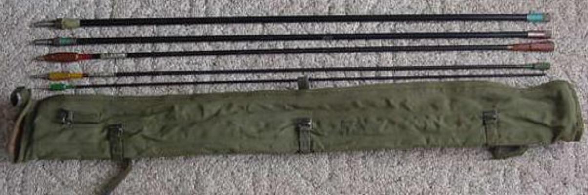 | BG-56-A Mast Bag with the following mast sections: MS-53 (grey tipped), MS-52 (blue tipped), MS-51 (red tipped), MS-50 (yellow tipped) and MS-49 (green tipped), above photo. |