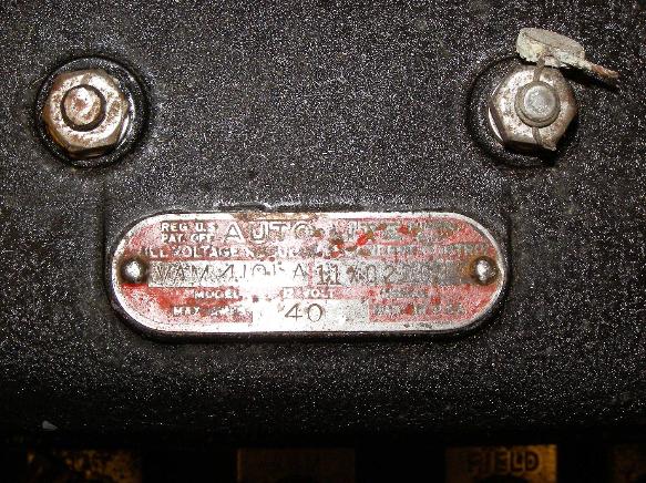 Auto-Lite 12 Volt 40 Amp Voltage Regulator Model VAM-4101A, above left and right photos. The serial number of this regulator is 11X022004 (November 1943, 11 Month X year). |