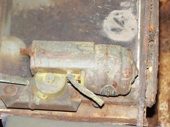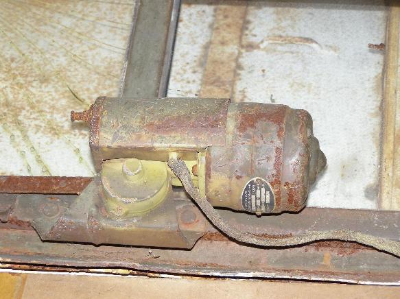 Electric Windshield Wiper Motor Assembly, Stewart Warner EX-25046-A, above left and right photos. The T-24 utilized two electric motor assemblies on the front windshield. Each was powered via a cord that plugged in below the inside windshield. QuestMasters is missing the both of the Wiper Arm Assembly SD-952257P with Blade SD-950559 for this T-24. |