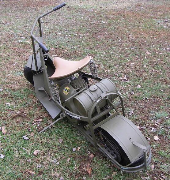 | Cushman 53 Airborne Scooter being used by a Paratrooper from the 101st Airborne Division, Normandy France June 1944. |