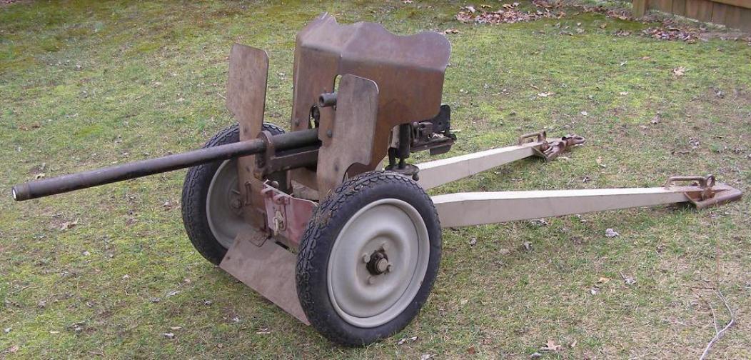 | Left side of the 25mm 1934 Hotchkiss AT Cannon, above photo. In 1926, Hotchkiss of Paris France proposed an in-house 25 mm cannon design that was eventually accepted for service in 1934. The design was given the designation: Canon de 25 mm semi-automatique modèle 1934. During the German invasion of France between May and June of 1940, the 25mm Hotchkiss was the main anti-tank weapon of the French infantry. This 25mm Hotchkiss Cannon had been in service with the French Army for 6 years in 1940. When the British Expeditionary Force landed in France in 1939, insufficient numbers of anti-tank weapons were available. The French Army issued the Canon de 25 to the British, which became known to the British as Anti-Tank Gun, 25 mm Hotchkiss, Mark I on 25 mm Carriage, Mark I. After the fall of France to Germany on June 22, 1940. Examples of the 25mm Hotchkiss A.T. Cannon captured by the German forces were operationally used under the designation 2,5 cm Pak 112(f). Finland purchased approximately 50 French 25 mm antitank guns from France during the Winter War of 1939/1940, but approximately 40 of them were delivered by February 1940 through Norway. The remaining ten guns were captured by the Germans when they invaded Norway in spring of 1940. During Interim Peace, Germany sold 200 captured guns to Finland. 133 of them were Model 1934 and 67 were Model 1937, and they were designated 25 PstK/34 and 25 PstK/37, respectively by the Finnish Army. They were withdrawn from front-line use by 1943 due to the increase in size and strength of Soviet Armor. This 25mm Hotchkiss Anti-Tank Cannon carries a Finnish nomenclature plate that shows repair or inspection with the Finnish Army during 1941 and again in 1942. This 1934 25mm French Hotchkiss Anti-Tank Gun was imported into the United States in the 1960's from Finland. It was purchased by QuestMasters in 2012. It is currently demilitarized to BATFE standards and is not currently a destructive device. This cannon is currently pending complete restoration. |