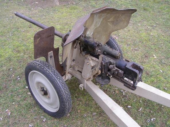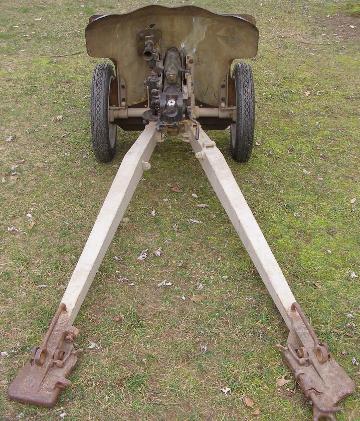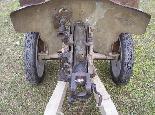 | 1934 French 25mm Hotchkiss AT Gun, right side, above left photo; and rear view, above right photo. |