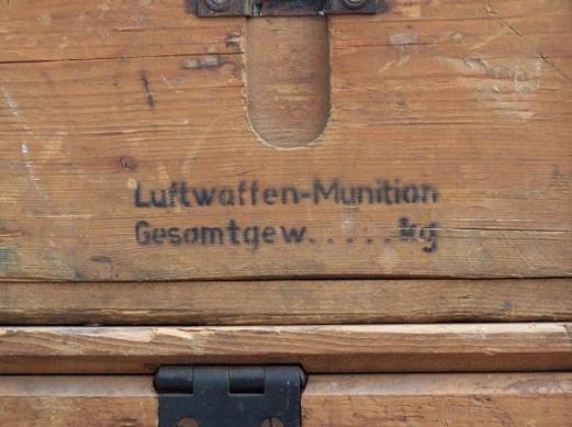 External ammunition box stenciling: Luftwaffen-Munition (Air Force Ammunition), above left photo. Heeres-Munition (Army Ammunition), above right photo. Equipment and ammunition was procured independently via separate contracts within the German Wehrmacht or Armed Forces during World War Two. Equipment and ammunition was specifically marked for the branch of service that it was ordered. It was not uncommon though to find supplies re-routed due to wartime shortages. |