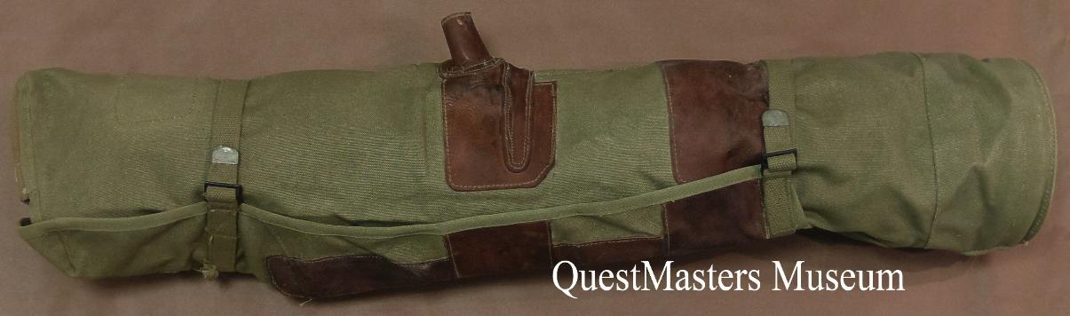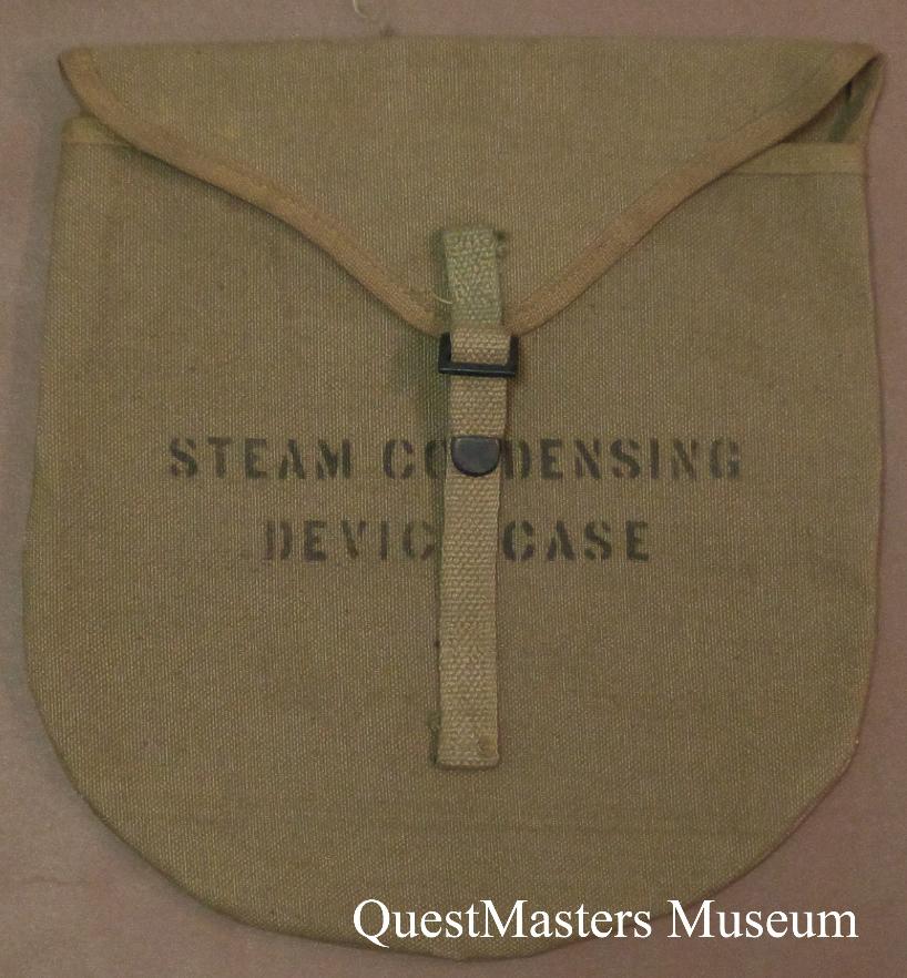 WWII Browning M-1917A1 .30 caliber water-cooled machine-gun steam condensing hose case, left photo. This example is marked on the front: STEAM CONDENSING DEVISE CASE |
