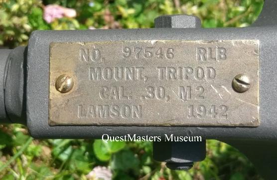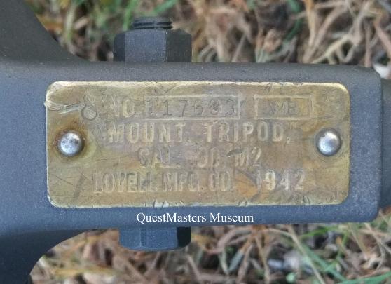 MOUNT, TRIPOD, CAL. .30 M2, Serial Number 117683, inspected by HMR with flaming bomb inspection stamp, manufactured by LOVELL MANUFACTURING COMPANY 1942, left photo. The top, rear of the mount is stamped C59336 LMC |