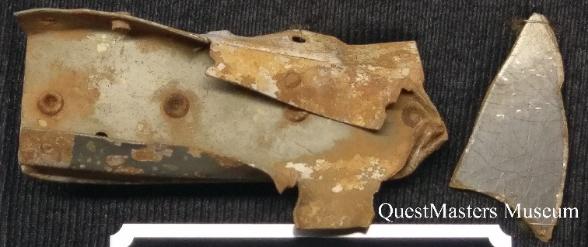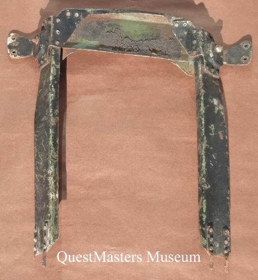 | U.S. Army Curtiss P-36A 38-15 "Hawk" Fighter Aircraft and P-36A 38-70 "Hawk" Fighter Aircraft, above four photos. On July 12th 1941, 09:15 Hawaii Time, a mid-air collision occurred between Lt. Ulysses S. O'Hern flying P-36A 38-15 and Lt. Richard A. Toole flying P-36A 38-70. Both pilots were able to bail-out of their aircraft successfully. Both aircraft were from the 45th Pursuit Squadron, 15th Pursuit Group, 7th Air Force. In 1994, QuestMasters conducted a search of the P-36A crash site, located on the Wailua Sugarcane Plantation, Oahu Hawaii U.S.A., between Haleiwa and Wahiawa, Oahu, Hawaii. A left and right main landing gear leg was found, top two photos; several pieces of heavily burned aircraft skin; a Signal Corps C-217 Coil Set data plate, with Serial Number 372, Order Number 14748-NY-38, produced by Aircraft Radio Corp. Boonton, N.J.; and a Signal Corps Radio Receiver BC-AH-229 data plate, Serial Number 372, Order Number 14748-NY-38, produced by Aircraft Radio Corp. The landing gear legs were recovered and forwarded to a museum for restoration. The P-36A aluminum frame section and plexiglass, above right photo, are in the QuestMasters Museum collection. Squadron Historical information via "Army Aviation in Hawaii, 1913-1941" by Ted Darcy, published 1991. |