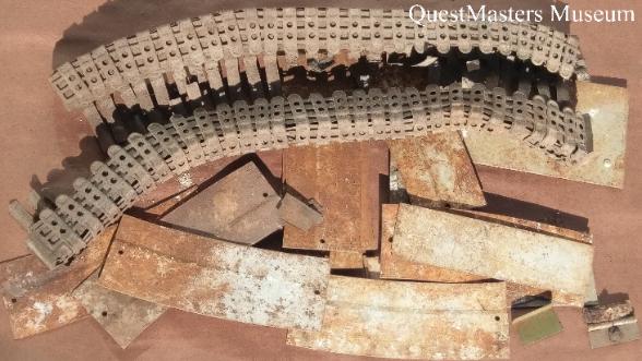 | U.S. Army B-24D-10-CO 41-23901, above three photos. Consolidated B-24D-10-CO 41-23901 was accepted September 8th 1942 and transferred to St. Paul, Minnesota Modification Center on September 23rd 1942. She was then transferred to New Castle on October 3rd 1942 and then Sioux City, Iowa for assignment with the 371st Bomb Squadron, 307th Bomb Group. The entire cadre and 35 bombers would transfer to Hamilton Field, California on October 26th 1942. Three days later, on October 31st 1942, B-24D-10-CO 41-23901 with the other B-24's of the 307th Bomb Group, would deploy to Oahu, Hawaii. The 371st Bomb Squadron of the 307th Bomb Group would be assigned to Wheeler Field to conduct search and patrol missions. On December 12th 1942, B-24D-10-CO 41-23901 with her Pilot 1st Lt. James H. McClendon, would crash on the Wailua Sugar Cane Plantation near Waimea Falls, Oahu Hawaii, causing the aircraft to explode and burn. The official Army Investigation cites the cause of the accident as unknown. The pilot and four crew members were killed in the crash with two of the crew surviving with minor injuries. On December 27th 1942, fifteen days after B-24D-10-CO 41-23901 crashed and was destroyed, twenty-seven 307th Bomb Group B-24's few from Oahu to Midway Island and attacked the Japanese on Wake Island. This extended range mission gave the 307th Bomb Group their name the "Long Rangers". The 307th Bomb Group would then set-up on Espirtu Santo, New Hebrides on January 13th 1943. This Consolidated B-24D-10-CO 41-23901 "Liberator" was found on the Wailua Sugar Cane Plantation near Waimea Falls by QuestMasters in 1994, Oahu, Hawaii. Much of aircraft remains were hauled away for aluminum scrap in late 1980's. Several small pieces were recovered for the QuestMasters Museum including the port wing star, above left photo; an E-6B Dead Reckoning Computer, a MARBLES match container (marked Made by Gladstone, Mich U.S.A., Pat'd 1900), multiple .50 caliber unfired rounds - marked DM 42 and LC 42 and a gun oiler container top, above right photo; two pieces of the main landing gear tires - note that each tire had a different tread pattern and the bottom half of a U.S. Army Mess Kit, from one of the crew members, above photo. |