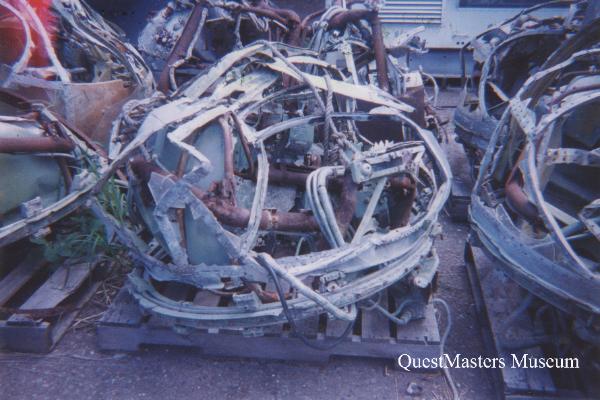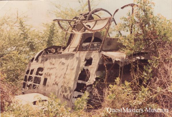 | U.S. Army B-24J-155-CO 44-40332, above five photos. This aircraft, B-24J-155-CO 44-40332 "Liberator" bomber, was found by QuestMasters Museum in February 1993 above Aiea, Hawaii. This is the first aircraft crash site that, what would later be known as QuestMasters, surveyed for historical identification. This aircraft was accepted March 22nd 1944, from the Consolidated San Diego Factory, and departed the Continental United States on May 3rd 1944. After arrival at Hickam Field, Oahu, Hawaii, the aircraft crashed shortly after take-off on May 5th 1944, 05:22 Hawaii Time, prior to her final assignment to the 5th Army Air Force in Australia. All ten crew members were killed on impact. The aircraft burst into flames, nearly destroying the entire aircraft and part of the rain forest of the Puu Uau Ridge, above Aiea, Oahu, Hawaii. This area is known today as the "Aiea Loop Trail". The official Army Report of Accident, dated May 14th 1944, lists the exact cause as to why the pilot failed to turn away from the mountains as "unknown". At the crash site, top left photo, a large section of the wing section remains near the trail. Further down the hill, one landing gear with tire is present as well as the Motor Products A-6B Tail Turret, above two center photos. The Consolidated San Diego produced B-24J used the Motor Products A-6B Hydraulic Turret in the nose and tail of the aircraft, replacing the Emerson A-15 Electric Turret. The Motor Products A-6B Hydraulic Nose Turret had an aluminum fairing around the two AN-M2 .50 caliber guns, to reduce wind drag. The Motor Products A-6B Tail Turret, shown above, dose not have these fairings. The pilot seat bottom, above photo, is from either the Pilot Wayne R. Kimble, 2nd Lt., ASN O-758579 or the Co-Pilot William E. Somsel Jr., 2nd Lt., ASN O-764815. The crew of B-24J-155-CO 44-40332 that were killed on May 5th 1944 were: Wayne R. Kimble, 2nd Lt., ASN O-758579, Pilot; William E. Somsel Jr., 2nd Lt., ASN O-764815, Co-Pilot; Charles E. Mueller, 2nd Lt., ASN O-707308, Navigator; Morris Righthand, 2nd Lt., ASN O-704314, Bombardier; Jack J. Dowd, Staff Sgt., ASN 36439290, Flight Engineer/Top Turret Gunner; Marion F. Norman, Staff Sgt., ASN 16167603, Radio Operator; James H. Means, Sgt., ASN 34473881, Gunner; Manuel F. Campos, Cpl., ASN 39294831, Gunner; Gerald L. Weiss, Cpl., ASN 16115551, Gunner; and Joseph J. Carlucci, Cpl., ASN 32726269, Gunner. QuestMasters recovered the remains of the Martin 250 Top Turret, Norden Bombsight C-1 Stabilizer, and aircraft nose section just behind the front turret with Consolidated Craft Number 1198, painted on the right side. This items are now at the Yankee Air Museum, Michigan. The Sperry A-6 Ball Turret was recovered from the crash site many years before 1993. A section of fuselage skin and the bottom seat pan section from one of two Pilot Seats, remain in the QuestMasters Museum collection. The black and white photo, shown above, was made by QuestMasters from an original 1944 Consolidated photo. This is not an actual photo of B-24J-155-CO 44-40332. |