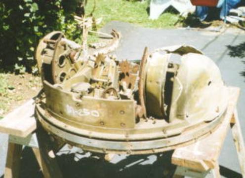 This is the Martin 250 upper turret. This turret was also recovered from a scrap yard in Macon, GA. for the restoration of this B-24J. The original M-250 upper turret from this aircraft was completely destroyed, but was recovered. The original turret was manufactured by "MAYTAG". After World War Two Maytag produced washing machines. |