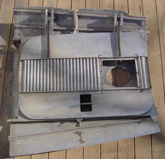 This is the port nose section of this B-24J (frames 0.1 to 0.2). The extreme right fragment shows the entry frame to the nose turret with door attached. The extreme top fragment is the Astro-Dome for the Astro-Compass. The Astro-Compass was used for nighttime navigation. |