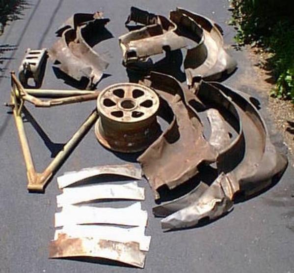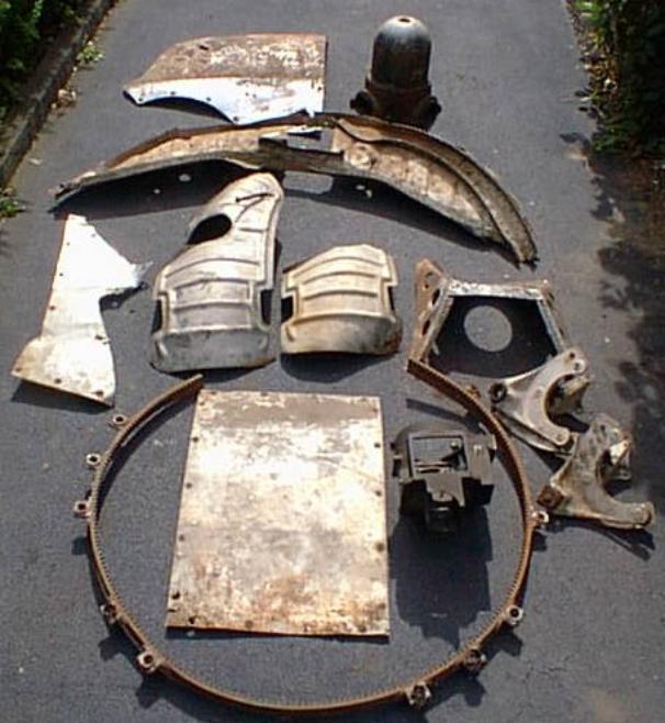 The following pictures are other B-24 parts that have been recovered for the restoration of this B-24 aircraft. In the center of the left photo is the Nose Landing Gear Wheel. This wheel utilized a 36 Inch S.C. 10 ply tire. |