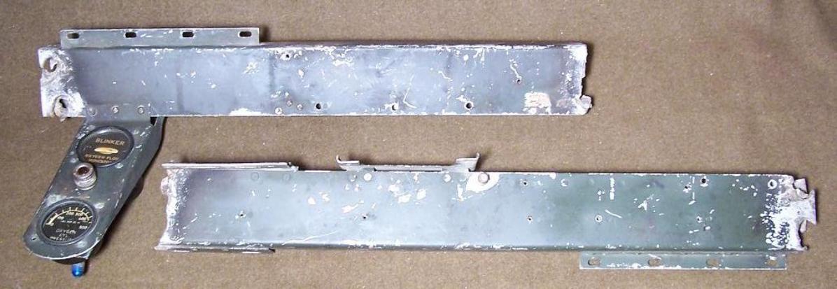 Instrument panel support assembly, above photo. The support assembly, was the lower part of the instrument panel and allowed the attachment of the Auxiliary Instrument Panels and Control Wheel Assemblies. The above photo shows the pilot section of the support, with oxygen gages attached and the rear of the co-pilot support assembly. |