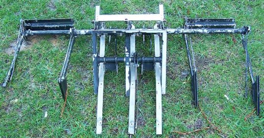 Rudder pedal control assembly. This is the complete assembly that mounted under the instrument panel. This assembly connected the pilot and co-pilot rudder pedals to the control cables for the rudder. |