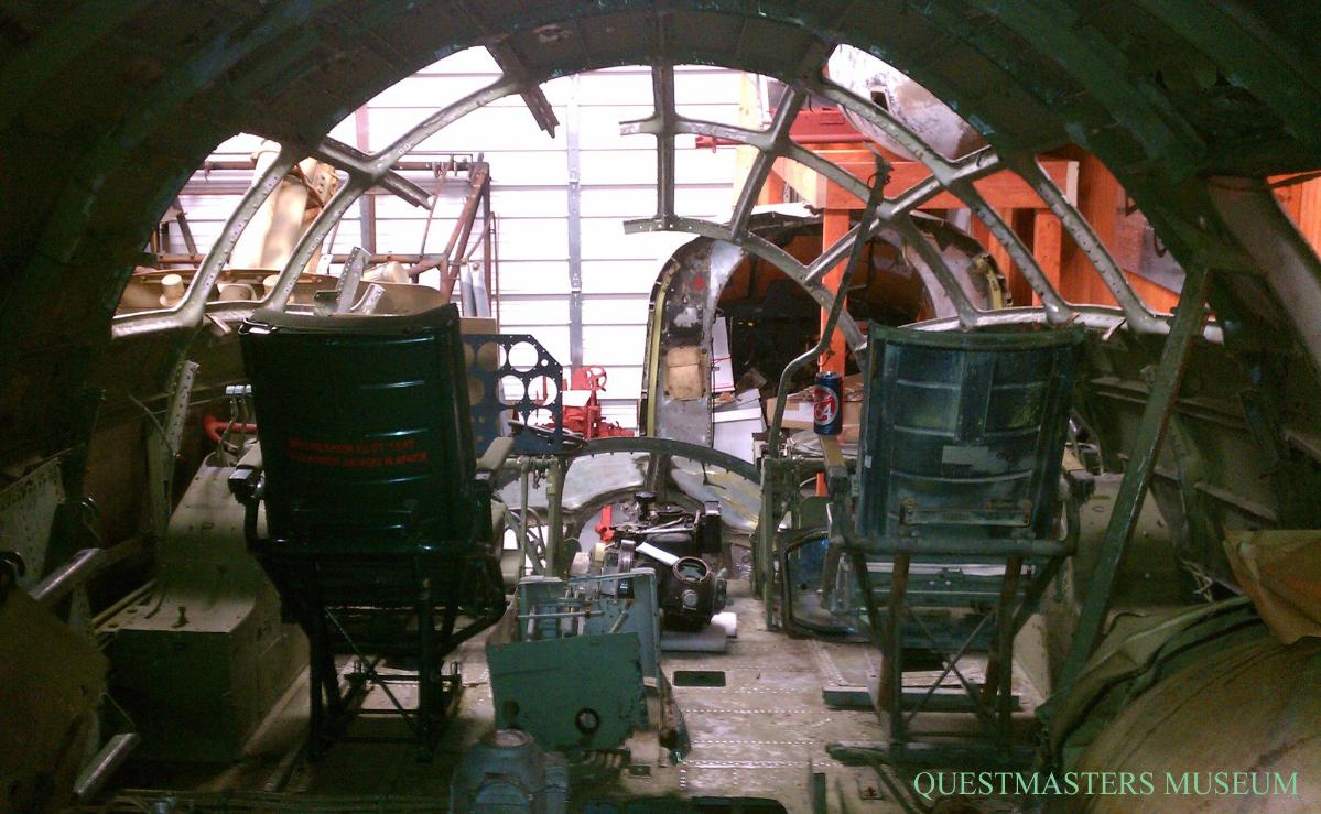 B-29-50-BW 42-24791 "The Big Time Operator" Cockpit, above photo. QuestMasters has been slowly sourcing parts for the restoration of the cockpit of the BTO. The Pilot and Co-Pilot seats have been mounted, as well as the control pedestals, instrument panel stands, control yokes, replica cockpit plexiglass and many other components. |