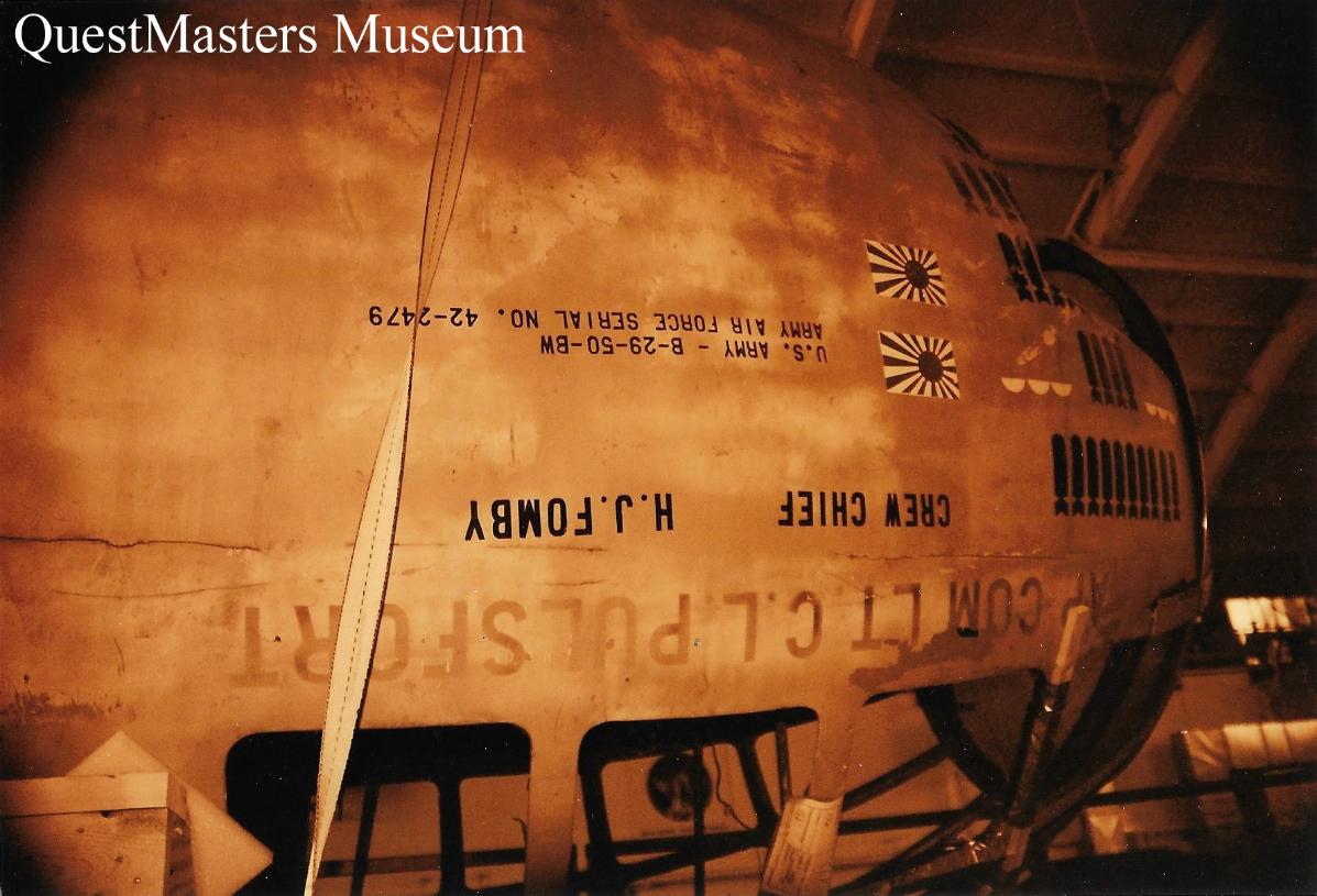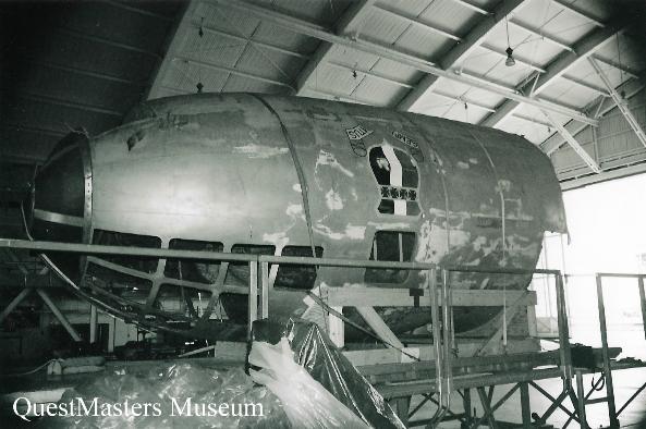 History of B-29-50-BW 42-24791 "The Big Time Operator": This B-29 "Super Fortress" was produced by Boeing, Wichita Kansas. It was accepted by the United States Army Air Force on October 17th 1944 as B-29 42-24791, craft number 4452 under the Block 50 contract with Boeing. After acceptance, this B-29 was assigned to the 1st Bomb Squadron (Very Heavy), 9th Bomb Group, 313th Bomb Wing, XXI Bomber Command, 20th Air Force. B-29 42-24791 was given the name "The Big Time Operator" and painted with the nose art of the Walt Disney character "Donald Duck" wearing radio headphones. B-29 42-24791 "The Big Time Operator" was flown on 46 Combat Missions over Japan from Guam and Tinian during 1945. Her mission list includes (not yet complete as of the publishing of this page): February 8th 1945 - XXI Bomber Command Mission 27 to Truk March 16th 1945 - XXI Bomber Command Mission 43 March 24th 1945 - Attacked primary target, Mitsubishi Aircraft Engine Works, Nagoya March 27th 1945 - Mining Mission Number 1 March 30th 1945 - Mining Mission Number 2 April 24th 1945 - XXI Bomber Command Mission 96, Primary Target May 3rd 1945 - Mined Mine Field Mike May 24th 1945 - Mining Mission 15 May 25th 1945 - Mining Mission 16 July 6th 1945 - Radar Scope Mission August 7th 1945 - XXI Bomber Command Mission 319, Attacked Yawata Industrial Area During 1945, the 1st Bomb Squadron rotated crews between all squadron aircraft. Because of this, not one single crew flew "The Big Time Operator" on every mission. Her 46 Combat Missions were flown by the following commanders: Shenefiel - 21 missions, Pulsfort - 7 missions, St. Dennis - 5 missions, Morris - 3 missions, Durkee - 2 missions, Hutchinson - 1 mission, Reid - 1 mission, Malo - 1 mission, Klemme - 1 mission, Nighswonger - 1 mission, Prehoda - 1 mission, McMahan - 1 mission and Abbott - 1 mission. After World War Two, B-29 42-24791 "The Big Time Operator" was flown back to the United States. She was stricken from inventory in 1950 and transferred to China Lake Naval Weapons Station, California. At China Lake "The Big Time Operator" was used as a ground target with many other famous B-29's for decades of weapons testing. The nose section was eventually recovered from China Lake and put on display at the Edward F. Beale Museum, California until 2001. The Beale Museum closed and the nose section was transferred through the National Museum of the United States Air Force to the New England Air Museum, Connecticut. The New England Air Museum used the remains of "The Big Time Operator" to restore their B-29 "Jacks Hack" QuestMasters obtained the nose of B-29-50-BW 42-24791 "The Big Time Operator" in November 2012. The cockpit greenhouse shown above was recovered from Omaha, Nebraska by QuestMasters for restoration of this very historic B-29. |