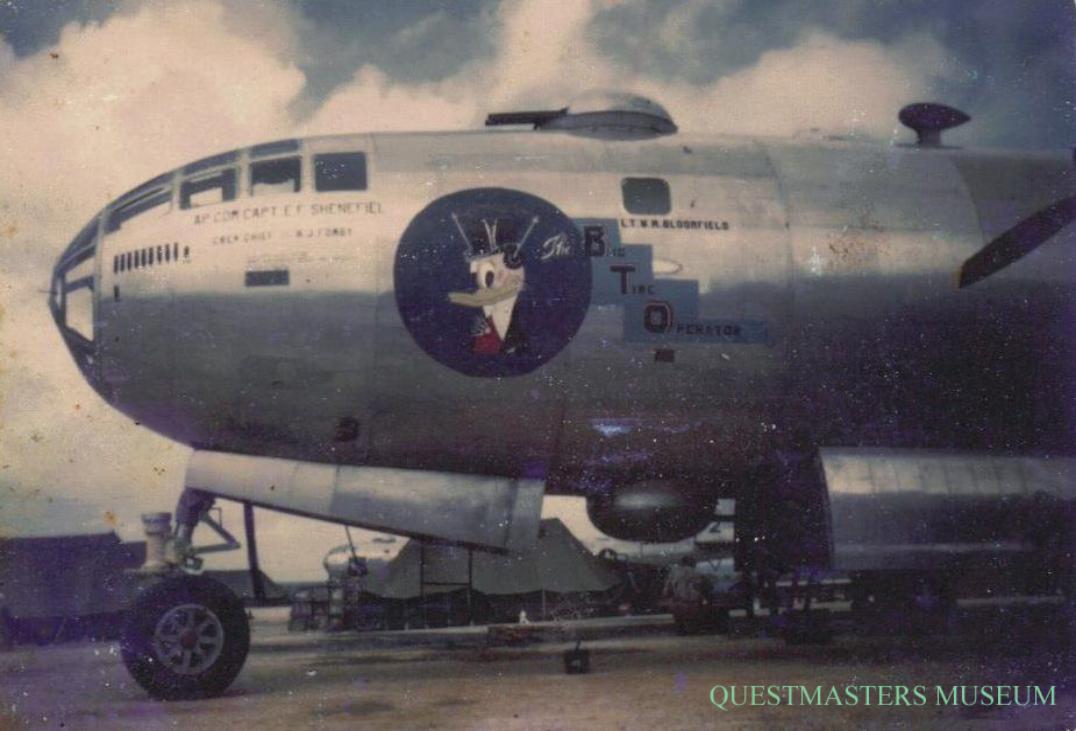 In 2018, QuestMasters commissioned a painting of B-29-50-BW 42-24791 "The Big Time Operator" with Ron Cole Aviation Art, shown above. This painting depicts the "BTO" on a night-time raid with other 1st Bomb Squadron B-29's over Japan. It is available for purchase on the Ron Cole Aviation Art website: https://roncole.net/collections/warbirds-of-world-war-ii/products/boeing-b-29-superfortress-big-time-operator |