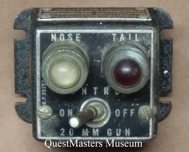 B-29 Blister Auxiliary Control Box, Type 8242380G2, General Electric Company, above left photo. The Blister Auxiliary-Control Box allowed the blister sighting station gunner, when controlling the tail turret, to fire only the machine-guns or the guns and 20mm cannon together. The two indicator lights on the box are used to indicate, to a blister gunner, when the tail mount and/or the lower-forward turret is being controlled by the tail or nose gunner, respectively. Two of these boxes were mounted on the B-29, one at each blister gunner station. B-29 Blister Gunner Sighting Station Plexiglas Dome, above right photo. This Plexiglas Dome is New-Old-Stock and has never been installed in an aircraft. The dome retains its original packaging film over the optically clear plexiglass. |
