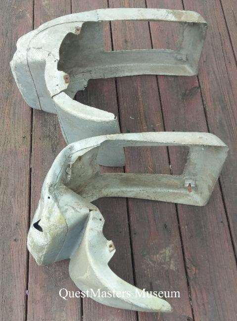 The B-29 "Super Fortress" Lower Forward Turret Gun Enclosure, two shown, left photo, and Turret Dome, right photo. Both are heavily damaged and will require full restoration. |
