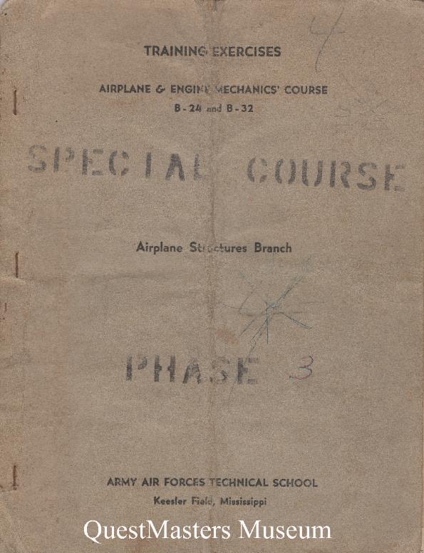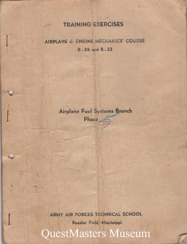 | Training Exercise Manuals, Airplane & Engine Mechanics' Course, B-24 and B-32, Airplane Structures and Airplane Fuel Systems Branch, Army Air Forces Technical School, Keesler Field, Mississippi, 1944, above two photos. |