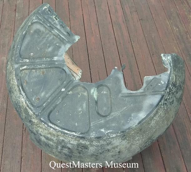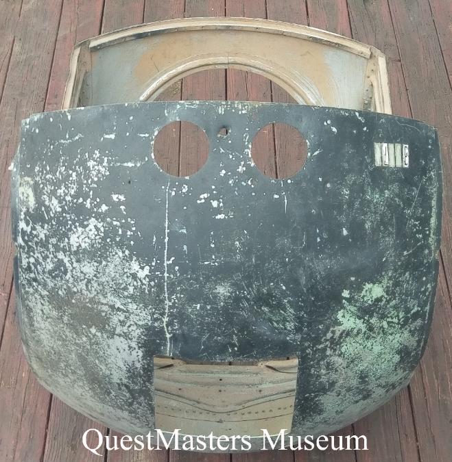 | The Model A-17 Turret, shown below, was produced by the Sperry Gyroscope Company, Great Neck, New York for the B-32 "Dominator" bomber, during WWII. The A-17 Turret was an armor-protected, ball type turret, designed for mounting in either the nose or tail of the aircraft. It housed the necessary equipment for the direct firing of two .50 caliber AN-M2 machine-guns. The Type K-11 Compensating Sight was used in the nose turret and the K-10 Compensating Sight in the tail turret. This unrestored turret was obtained by QuestMasters in 2020. |