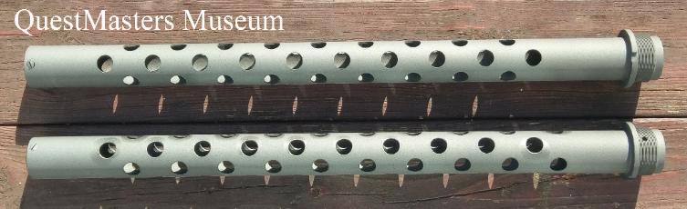 | Model A-17 Turret Main Junction box, above left photo, and AN-M2 .50 caliber machine-gun barrel shrouds, above right photo. These parts will be used in the restoration of this A-17 Turret. |