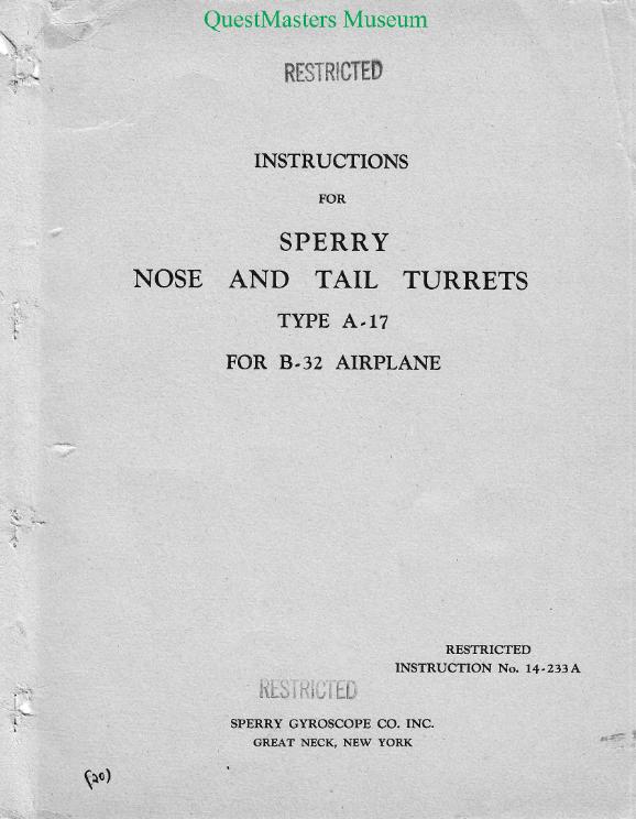 | SPERRY A-17 NOSE AND TAIL TURRET MANUAL INSTRUCTION NO. 14-233A: |