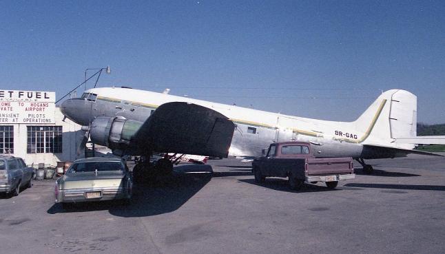 C-47A 43-15137 wearing the colors registered as VP-GAG (after 27 December 1950 and before offical registration of 8R-GAG in 1967), in Guyana in 1968, above left photo. C-47A 43-15137 wearing the colors of 8R-GAG at Hogans Private Airport, above right photo. Photo credit: Win Anderson via Wally Anderson, left photo; Charlie Pyles right photo. |