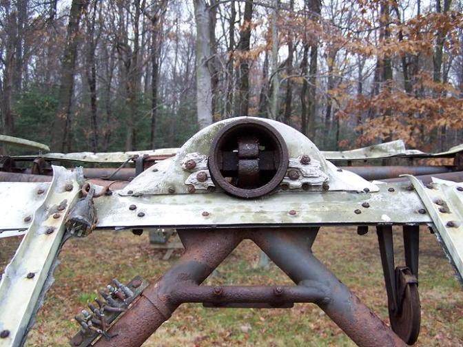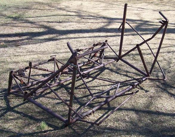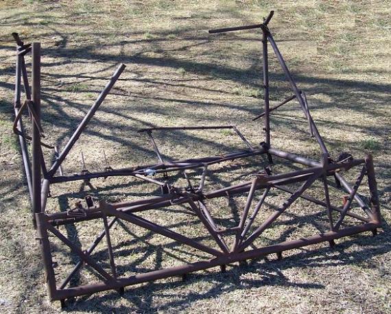 | Another CG-4A Glider Cockpit owned by QuestMasters, above photos. This cockpit was used as a source of spare tubing for other aircraft and projects after the war. Most of the rear seat area and top tubing has been removed. The Pilot and Co-Pilot seat support area remains intact with the seat belt "D" Rings still attached. The instrument panel support tubing also remains intact. This cockpit section may be used to restore the cockpit at the top of this page or may be restored as a second CG-4A for the Museum. |