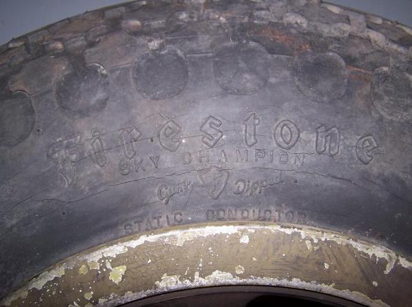 | CG-4A Glider Landing Gear Wheel, above photos. One of the tires for this CG-4A was made by "Firestone" "SKY CHAMPION" and is an 8-Ply 27 S.C. size tire. |
