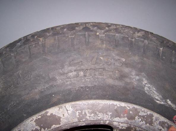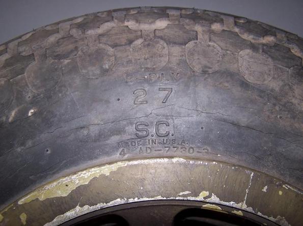 | CG-4A Glider Landing Gear Wheel, above photos. The other tire for this CG-4A was made by "GENERAL" and is 27 S.C. TYPE-1 size tire. |