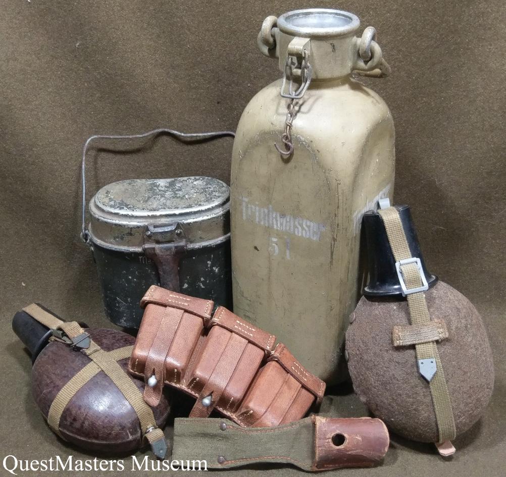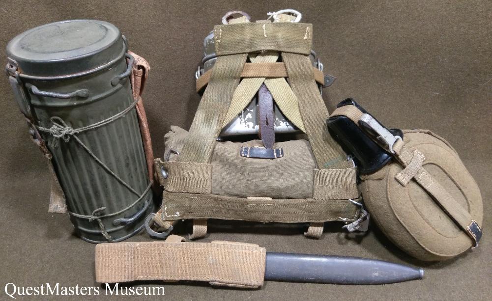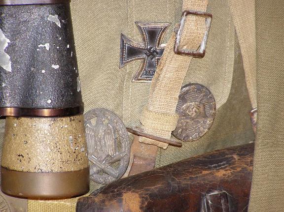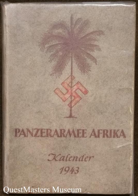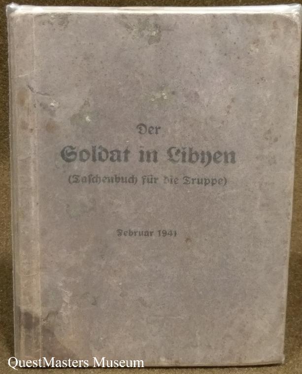 German Panzerarmee Afrika Kalender 1943, above left photo. This 1943 calendar was owned by Sanitier (Medic) William M. Munder, Feldlassaerett 667 (Field Hospital 667), Tunis, Tunisia. He arrived in North Africa on February 11th 1943 and his last entry in this book was May 22nd 1943, when he was taken as a Prisoner of War (POW). Der Soldat in Libyen, Februar 1941, above right photo. This book "Der Soldat in Libyen" "Tashenbuch fur die Truppe", The Soldiers in Libya, Pocketbook for the Troops, was produced in February 1941. It covers the uniforms and equipment of enemy (English and French) forces with color uniform identification, vehicles, topography and a large area map. This book was owned by Sanitats-Feldwebel Bonow (Medical Non-Commissioned Officer). |
