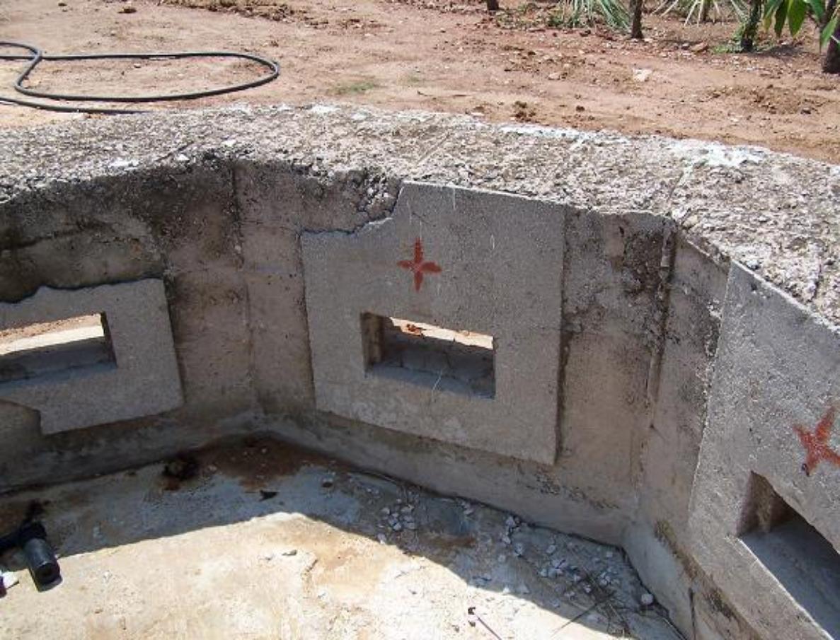 | In 2004, QuestMasters conducted WWII archaeological work in the town of Glyfada, Greece. This town lies 4 miles south of Athens, Greece. This German "Pill Box" fighting position was constructed during WWII for a German machine-gun crew, with 360 degrees of coverage. The "Pill Box" protrudes roughly 3 feet above the ground, with the crew/standing area below ground. The rear part of the "Pill Box" has been destroyed and the center fighting position filled-in with concrete after WWII. |