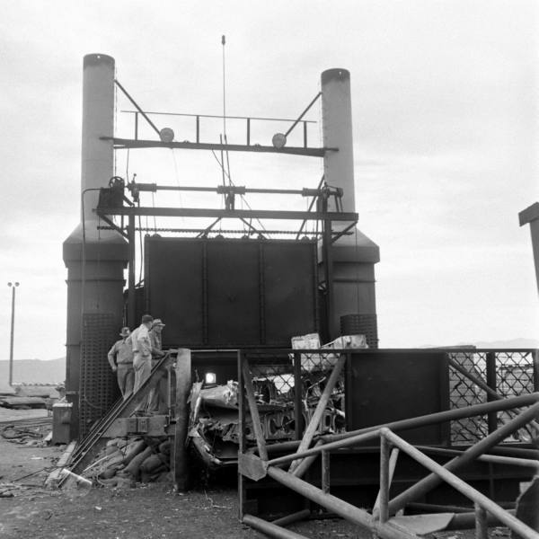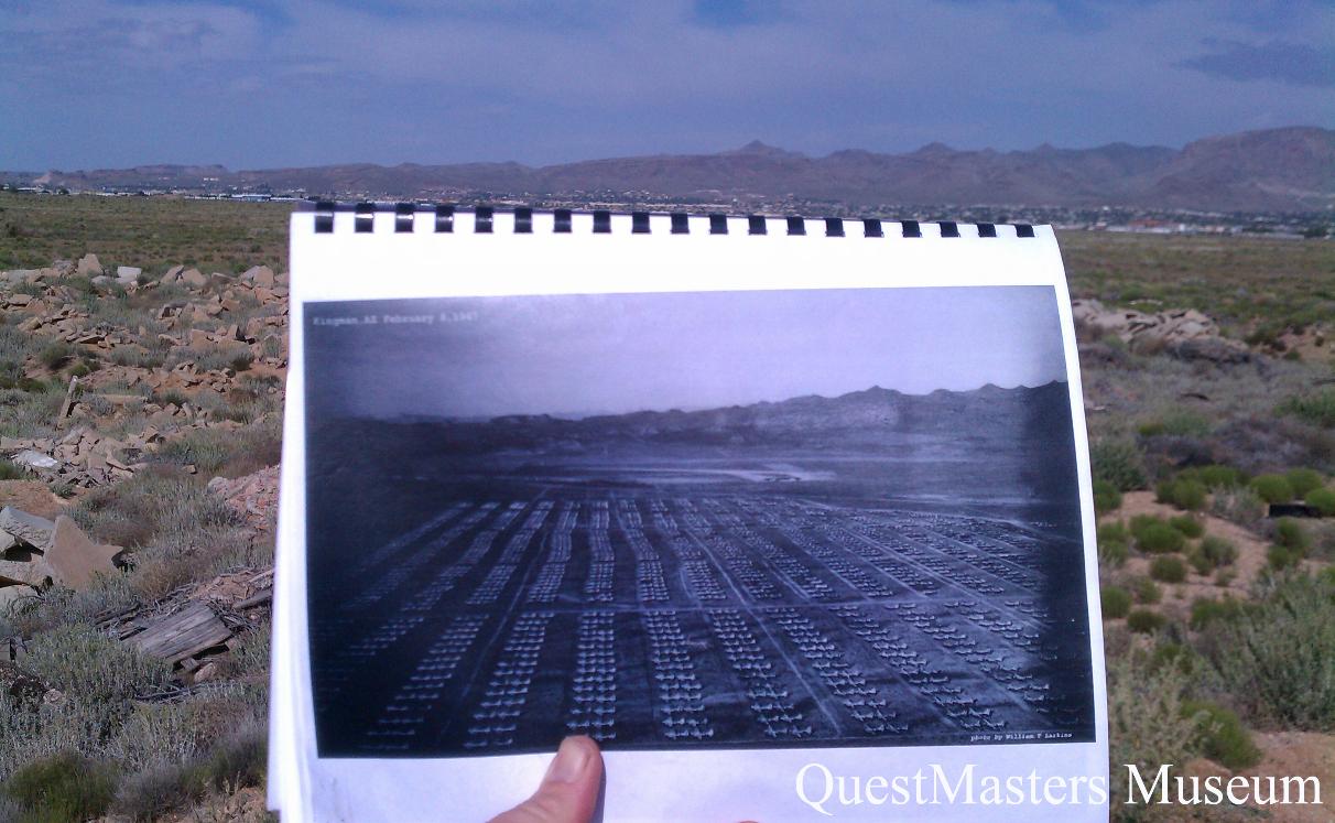| In 2015 and again in 2017, QuestMasters Museum conducted a survey of the area around the former Kingman Army Air Field in search of any WWII aircraft remains that had been left behind from the scrapping operations that had been done between 1946 and 1948. The former storage and scrapping area, to the south of Kingman Field, is roughly 2 square miles of open desert. Kingman and the surrounding area is absolutely gorgeous, and is worth the trip alone - a high mountain desert with tumbleweed and desert flowers. Kingman Airport is currently an industrial park with commercial aircraft storage in a fenced area in the south/west of the Air Field. The WWII aircraft that were stored at Kingman, between 1946 and 1948, shown in the black and white photos below, were stripped of any usable components - engines and propellers, and then were dragged to mobile crane-operated guillotines to cut the airframe into easily movable sections. These aircraft sections would then be pushed into one of three mobile smelters that had been set-up on site to melt the aircraft into huge aluminum ingots, shown at the very bottom of this page. Many hours of all-day searching with a metal detector did allow for many small WWII aircraft artifacts to be recovered by QuestMasters. A scrapping operation of this size will yield small parts for decades to come, but for the reader and adventurer, there are no large WWII aircraft components remaining at the Kingman Air Field or surrounding desert to the open-eye. There is a substantial amount of modern trash and rubbish dumping that has been done in the area. A small museum dedicated to the history of Kingman Army Air Field was erected at the municipal airport and industrial park. The museum closed in 2016 and all of the privately owned WWII artifacts were sold at auction. The museum is permanently closed. The following photos, taken between 1946 and 1948 of WWII combat veteran aircraft being scrapped at Kingman Army Air Field, and WWII aircraft artifacts recovered by QuestMasters Museum from the desert scrapping fields are not shown in any specific order. These photos are included here for historic reference, documentation, preservation and future research. |