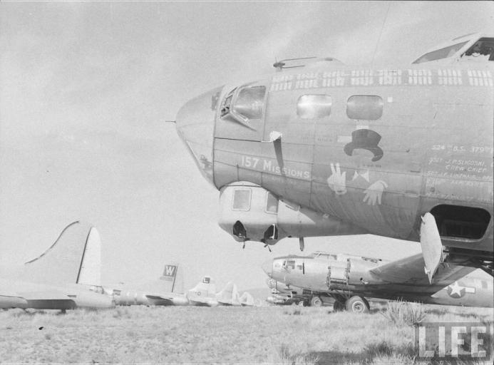 | Very few WWII aircraft or artifacts survived the scrapping operations at Depot 41, Kingman Army Air Field, Kingman Arizona. One specific historic aircraft was spared, B-17D-BO 40-3097 "Flying Fortress" named "The Swoose". This aircraft saw extensive use in the Southwest Pacific theatre of World War II and survived to become the oldest B-17 still intact. It is the only early "shark fin" B-17 known to exist, and the only surviving B-17 to have seen action in the 1941–42 Philippines Campaign, operating on the first day of the United States entry into the war. She was saved from Kingman in March 1946. The extensive 33-piece, WWII aircraft nose art collection, owned by the Commemorative Air Museum, Dallas, Texas, was saved and obtained from the scrapping operations done at Walnut Ridge, Arkansas, in 1946. None of these artifacts came from the Kingman scrapping operations. For the Historian and Adventurer: If you are planning a trip to Kingman, Arizona, this area is a beautiful and history-rich "small town". With the famous Route 66, early American mining operations, and outright beautiful desert landscape with star filled skies that cannot be seen in a major U.S. city, Kingman, Arizona is a "must see". If you planning a short stay in the area, QuestMasters recommends the El Trovatore Motel, 1440 E Andy Devine Ave, Kingman, AZ 86401. This small family-owned motel is a basic slice of Americana, with history themed rooms. It is just a basic roadside motel - the type of place you want to sleep in, when you Quest across the western United States. |