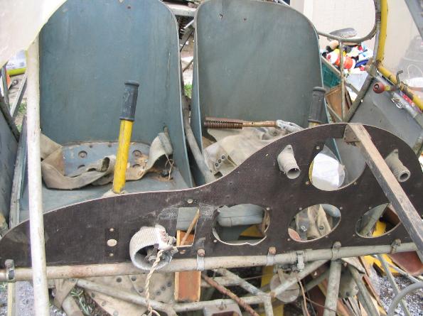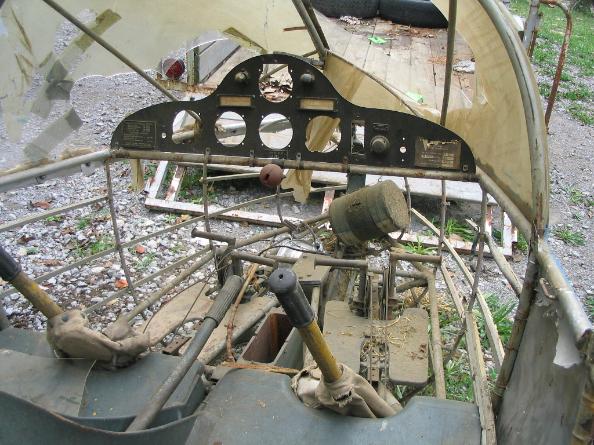 | LNE-1 31570 cockpit in private storage in Tennessee, above left and right photo. This cockpit is unrestored and shows the original colors of the cockpit interior and instrument panel. |