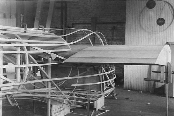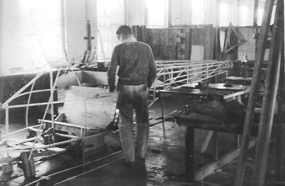 | LNE-1 production at the Pratt Read & Co., above left photo. (Photo credit: Ludington Family Archives via Jim Moffett) LNE-1 mock-up at the Pratt Read & Co., above right photo. (Photo credit: Ludington Family Archives via Jim Moffett) |