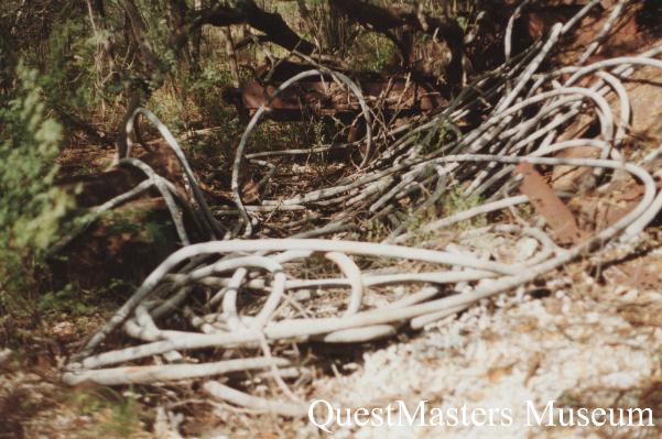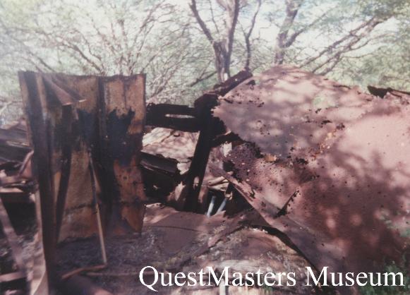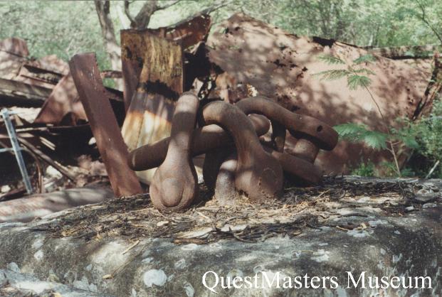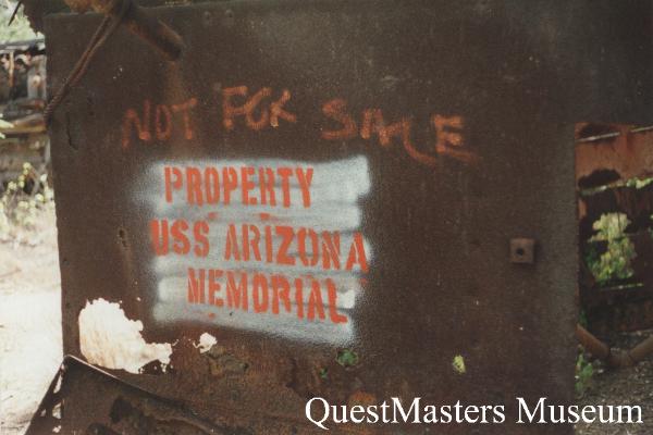 | Between 1993 and 1996, QuestMasters Museum conducted WWII archaeological work on the island of Oahu, Hawaii. In Pearl Harbor, the remains of the USS Arizona rests with the loss of 1,177 of her crew, many of whom are still entombed below her decks, after her sinking during the Japanese attack, December 7th 1941. When the USS Arizona Memorial was created, the remaining superstructure that protruded above water, was removed and deposited on the Waipio Peninsula, under control of the U.S. Navy. In 1994 and 1995, QuestMasters Museum was allowed to inspect and photograph the remains of the USS Arizona superstructure on the Waipio Peninsula. |