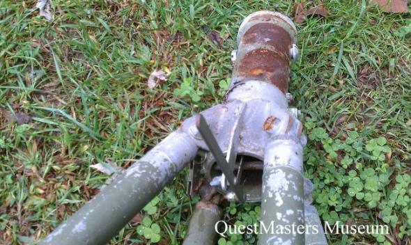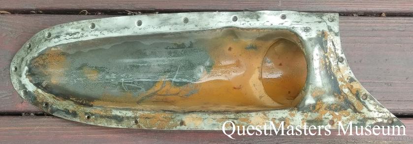 U.S. A-20 "Havoc" Medium Bomber, AN-M2 .50 Caliber Machine-Gun, Gun Tube, above two photos. This WWII A-20 "Havoc" Medium Bomber Gun Tube or Port is made of stainless steel and has some of the original paint. This gun tube or port was mounted in the A-20 Bombardment nose front, right photo, and is from the port or left side of the aircraft. |