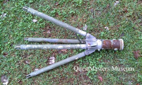 U.S. Army WWII C-47 "Skytrain" glider tow and release mechanism, above two photos. This WWII C-47 "Skytrain" aircraft glider tow and release mechanism was mounted at the tail of the aircraft. This was the connecting point for the glider tow rope and the release mechanism for the rope and communications cable. This assembly is not currently for sale. |