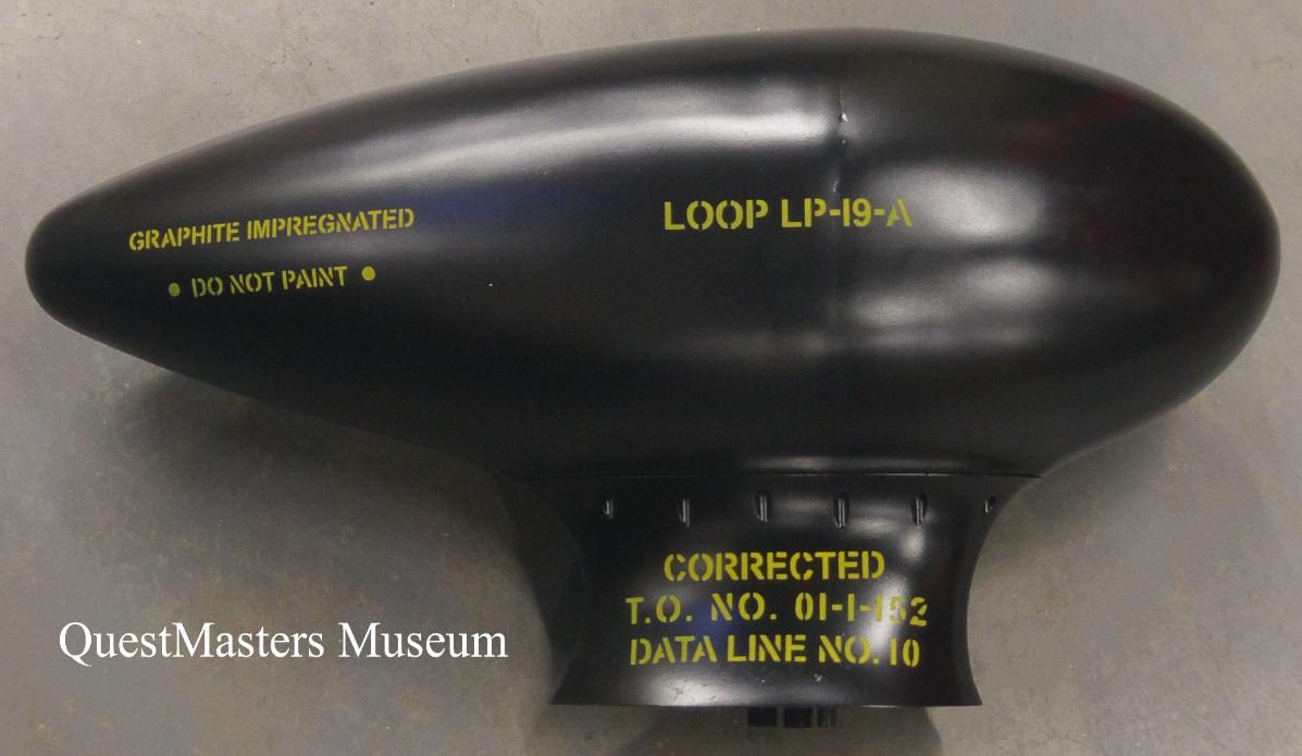 U.S. Army Air Force WWII LP-19-A Aircraft Loop Antenna, above photo. This LP-19-A, very similar to the LP-21, was restored by QuestMasters Museum. This style of loop antenna, known as the ADF Football, was used on various aircraft, such as the C-47, B-24 and B-17. |