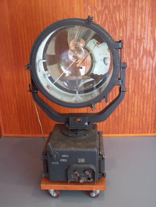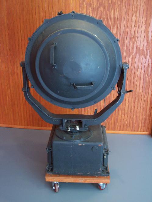 | 1944 German 171cm Searchlight, above left and right photo. The original application of this searchlight is uncertain. It is not marked to a specific branch of the German Armed Forces. It was possibly produced to be mounted on a vehicle or a fixed position. The mirror is marked: 24505/44 fwt 171mm. |