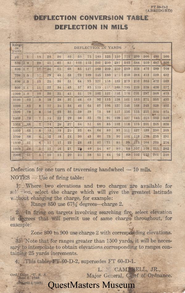WWII 60mm Mortar Firing Tables, FT60-D-2, above two photos. This firing table was written June 3rd 1943 for the M49A2 High Explosive Shell with M52B1 Point Detonating Fuze. |