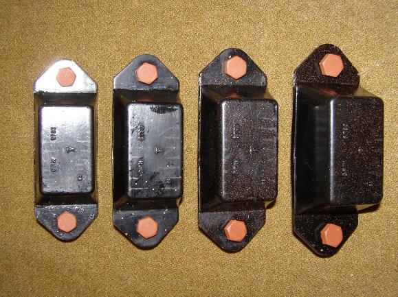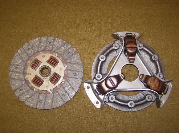 | Frame Bumpers, above left photo. The Frame Bumpers are marked GPW 5783 with a script "F". These were mounted above each axle on the frame to prevent contact of the axle housing on the frame. Clutch and Clutch Plate, above right photo. |