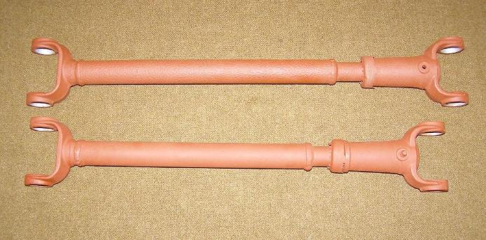 | Brake Cylinder Floor Inspection Cover, left photo. This cover is marked with a script "F" on the front. Drive Shafts, rear (top) and front (bottom), above right photo. These two drive shafts are the late GPW 1 1/4" diameter type. |