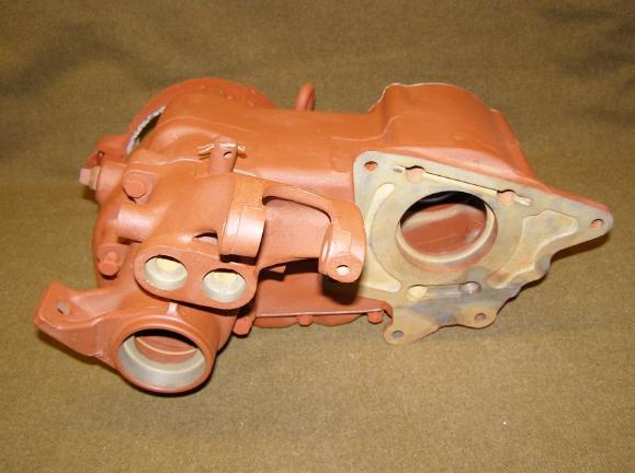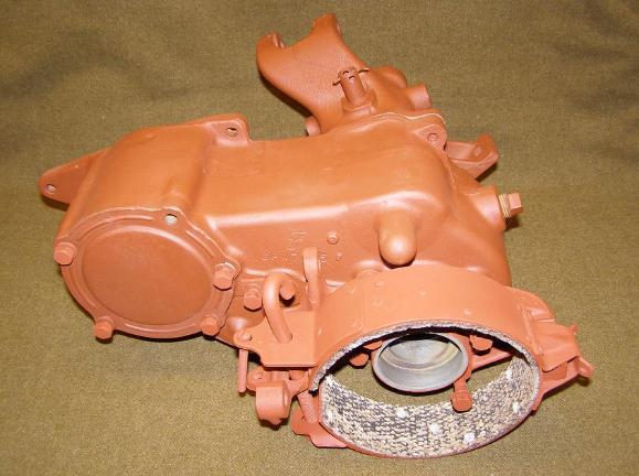 | T-84 Transmission, left and right photo. The T-84 was used throughout GPW production. From the start of production through September 1942 the oil drain holes were located on the passenger side (above right photo). The Case is marked in raised markings GPW7008 with a script "F". The Gear Shift Lever Housing (top cover) is marked with cast markings GPW 7222 1. The Main Drive Shaft Retainer (front cover) is marked with cast markings GPW-7050. |