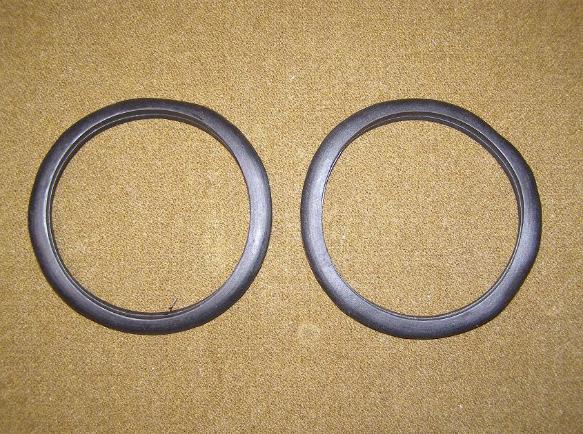 | Drivers side Tail Light, above left photo. The tail light bezel for the GPW should be unmarked. Tail Light Rubber Rings, above right photo. Rubber rings were installed in the tail light opening from the start of GPW production through December 1942. These rings were deleted from production due to wartime rubber shortages. |